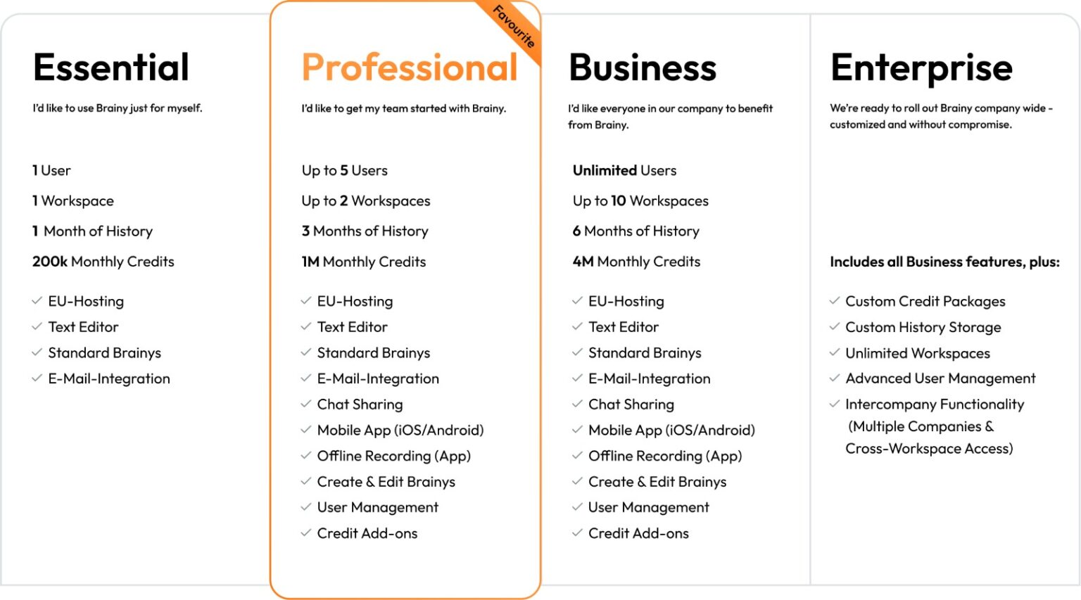Choose your Brainy plan now and discover the possibilities in a personal demo! Starting at € 48,-/month.