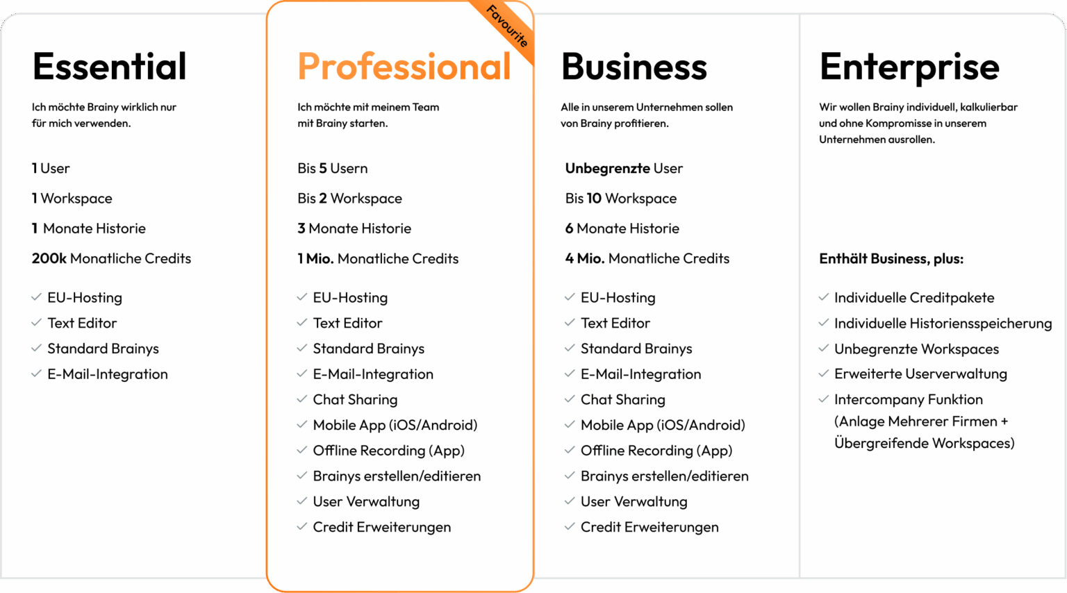 Wählen Sie jetzt Ihren Brainy-Plan und lassen Sie sich in einer persönlichen Demo von den Möglichkeiten überzeugen! Ab 49€ / Monat.